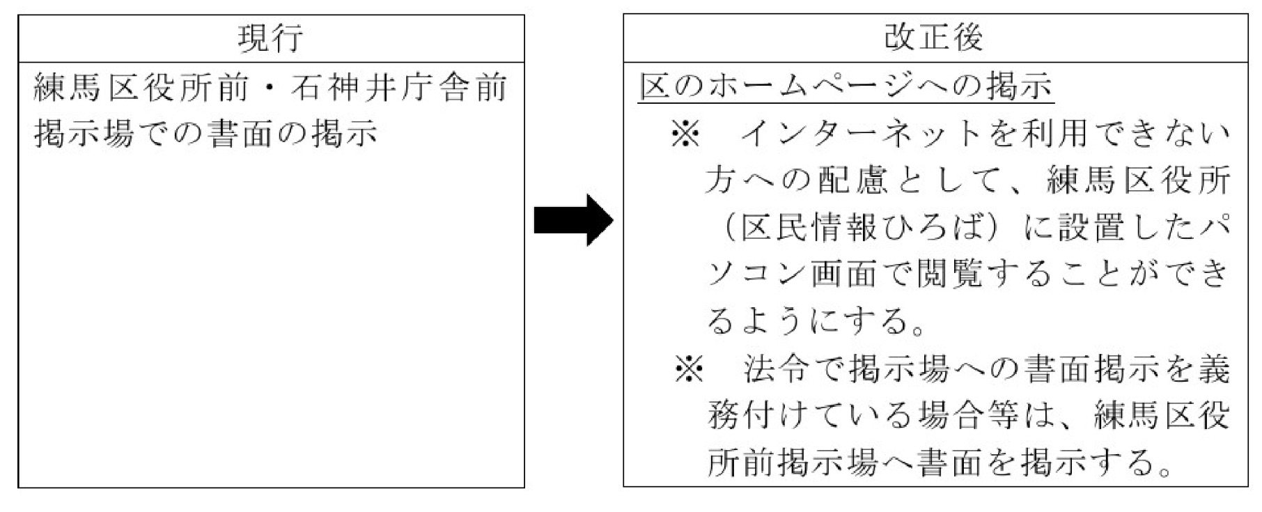 - ただし、法令により必要な場合は、掲示場での掲示も残す