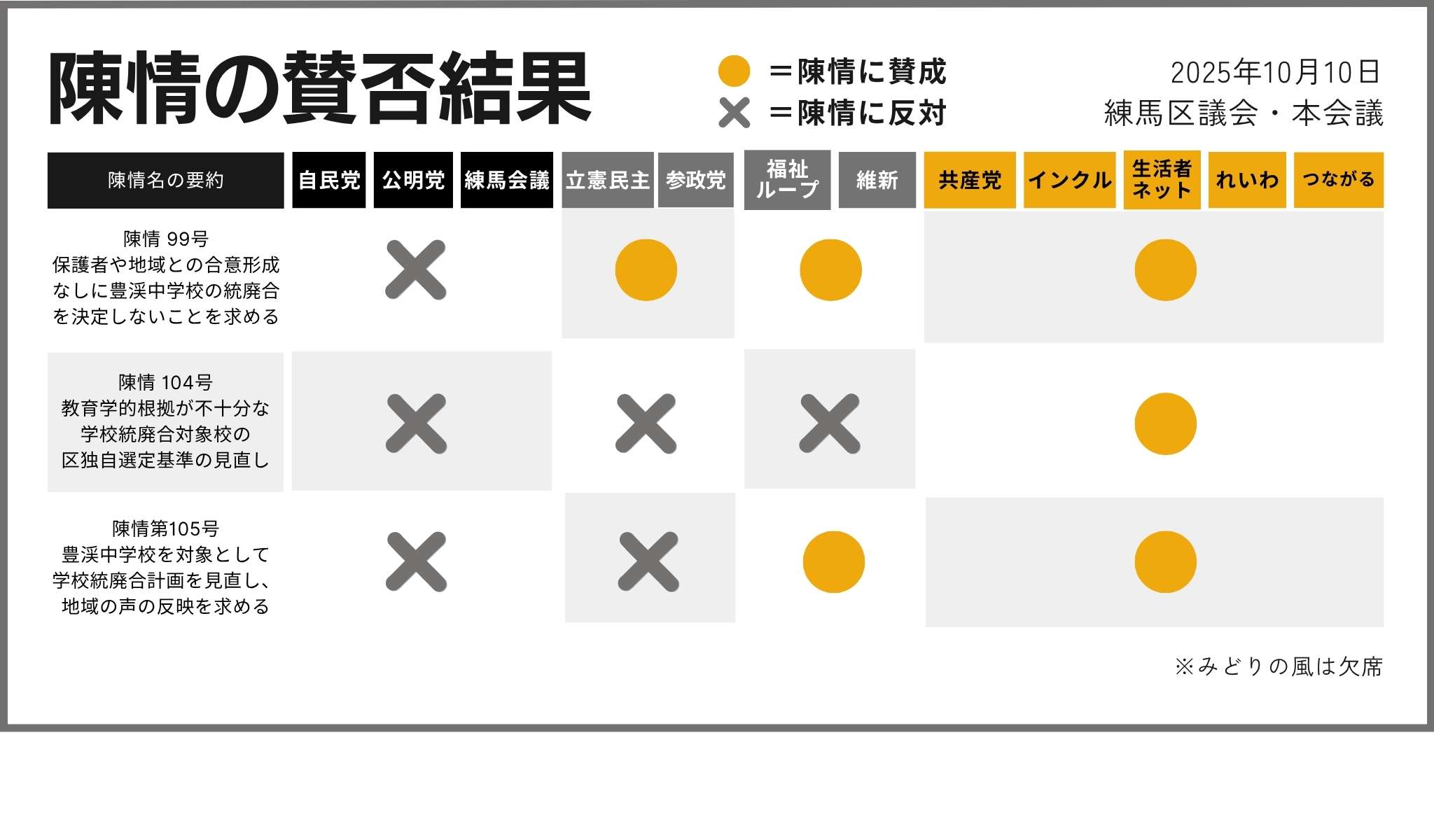 私たちの会派はもちろん、豊渓中を守るほう、陳情に賛成をしました。