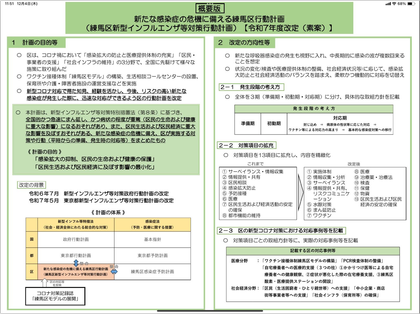 ① 『練馬区新型インフルエンザ等対策行動計画』令和7年度改定(素案)