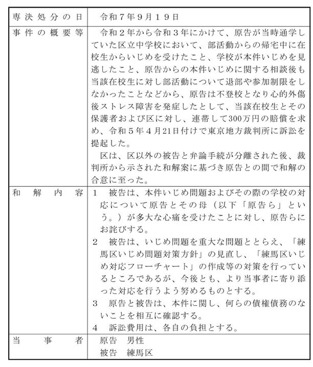 練馬区とは和解したが、当事者、つまり加害者・被害者の裁判も起きたとのこと。