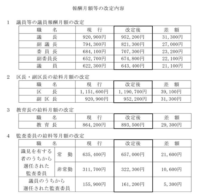 - 22区で同様に、人事院勧告に基づき、改定を行う