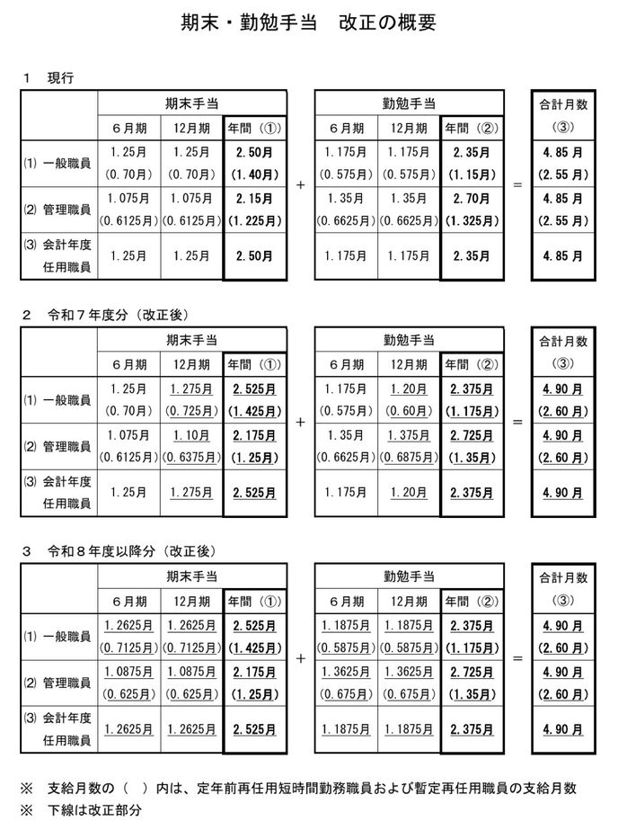 月額+期末手当の年間支給月数を引き上げる、という内容。