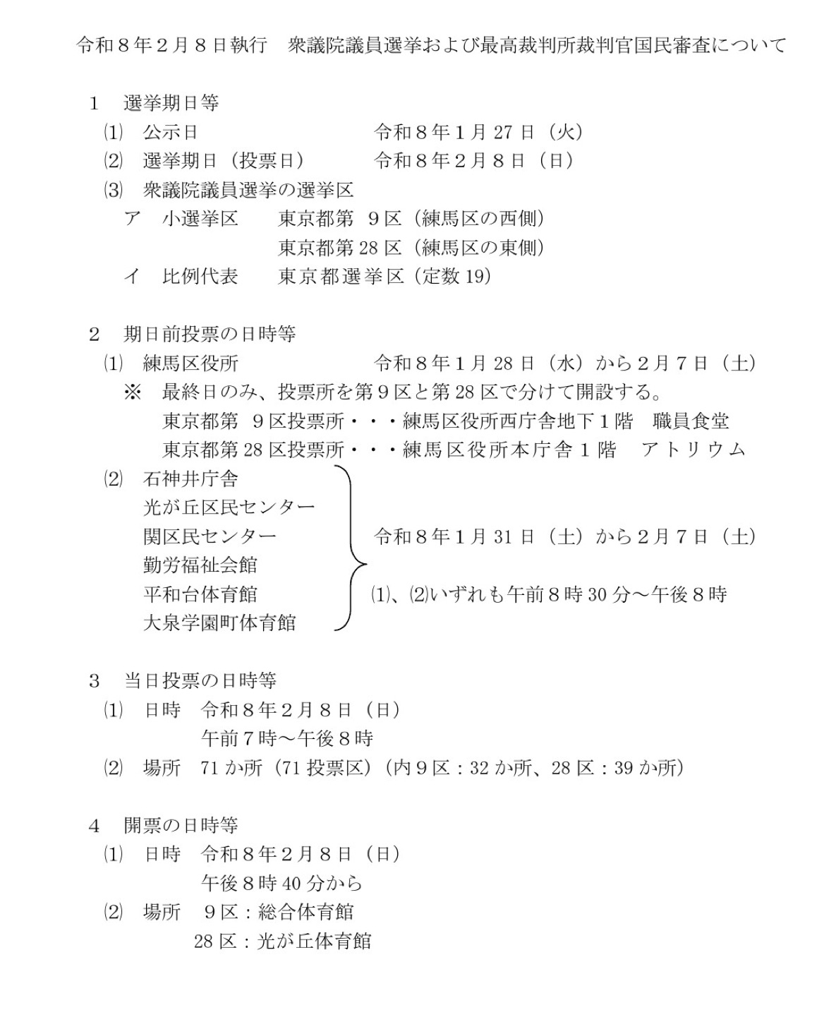 • 期日前投票:練馬区役所は、アトリウムと地下職員食堂の2箇所に分けて実施